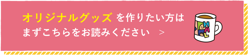HALでは、オリジナルグッズの製作を行っています。種類は様々!缶バッジ・オリジナルステッカー・マグカップ・Tシャツなどお客様のブランディングや記念品をHALのオリジナルデザインでご提案いたします!